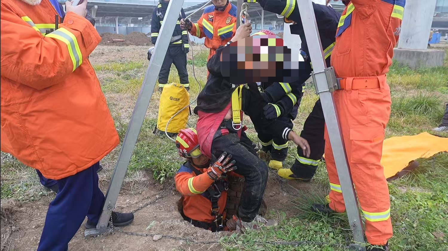 经勘查,一名男子坠落进路边废弃排水井中,被困在约3米深的井底,脚部受伤。现场指挥员立即制定救援方案,使用三脚架牵引系统垂降一名消防员下井实施救援。救援过程中,消防员使用专业救援绳索对伤者进行固定保护,避免二次伤害,在确认各项保护措施都安全的情况下,使用绳索将伤者平稳吊出,并不断安抚伤者情绪。在井口平台处,两名消防员负责牵引防护,并协力将被困工人安全抬出,随后立即将其送往医院。目前该工人无生命危险,正在医院接受治疗。